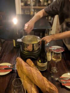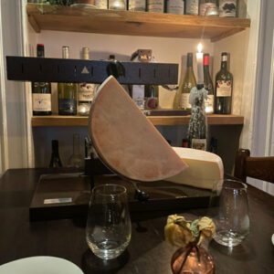 Authentic raclette : Quarter wheel – for 6 to 8 people Half wheel – for 12 to 14 people. Fondue for smaller groups, up to 6 people.